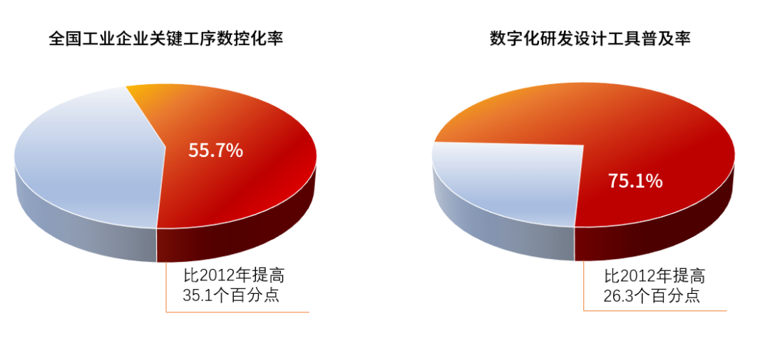 中國電子信息產業發展研究院院長張立指出:“兩化深度融合標準大規模應用普及并向國際推廣,引發制造業生產方式、企業形態、業務模式和就業方式加速變革。”截至目前,全國工業企業關鍵工序數控化率、數字化研發設計工具普及率分別達到55.7%和75.1%,比2012年提高了35.1個百分點和26.3個百分點。