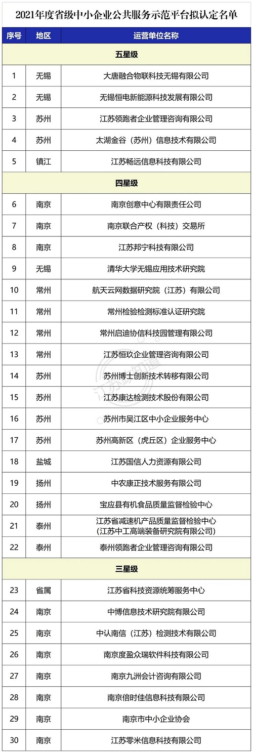 根據《江蘇省中小企業公共服務示范平臺認定管理辦法》(蘇工信規〔2020〕2號)、《關于開展2021年度省級中小企業公共服務示范平臺認定工作的通知》(蘇工信服建〔2021〕357號)要求,經過專家評審、現場核查、專題會審等程序,優特力科技被評為2021年度省級三星級中小企業公共服務示范平臺。