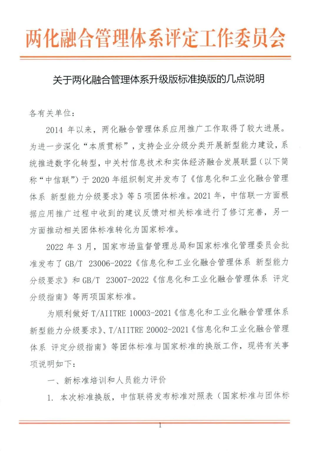 通知公告 | 關(guān)于兩化融合管理體系升級(jí)版標(biāo)準(zhǔn)換版的幾點(diǎn)說(shuō)明